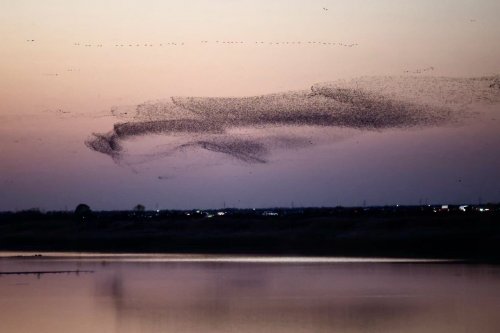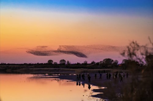 鸟浪的壮观不仅在于其规模,更在于其不断变化的飞行姿态。佳能相机的高速连拍功能让摄影师们能够完整记录鸟群从聚集到腾空,再到变换队形的全过程。“我使用佳能R5 Mark II,它的高速连拍让我能够捕捉到鸟群飞行的每一个细节,为后期创作提供了丰富素材。”一位摄影爱好者分享道。