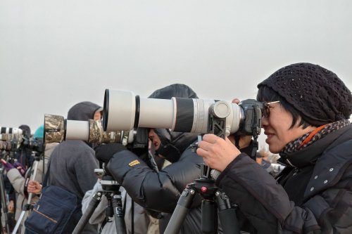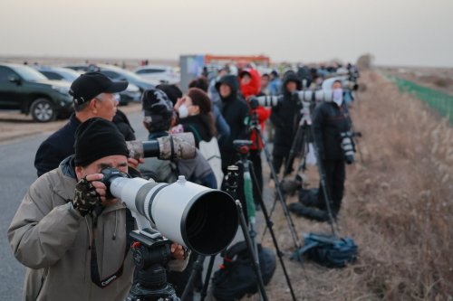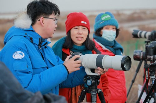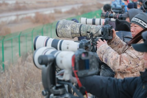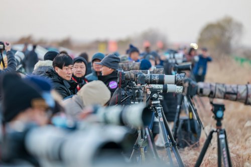 这一生态奇观吸引了来自全国各地的生态摄影爱好者。在各个观鸟点位,摄影爱好者们架起长枪短炮,全神贯注地捕捉着每一个精彩瞬间。在这其中,佳能专微系统的身影格外引人注目。